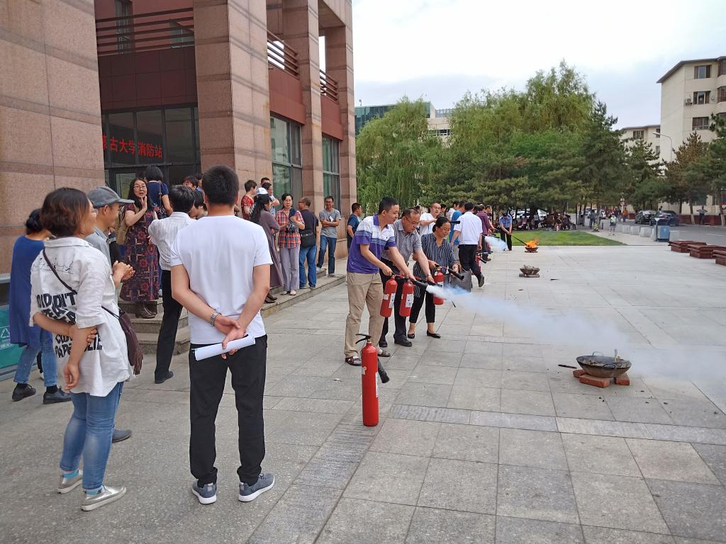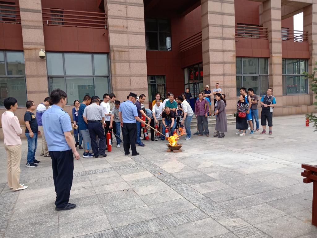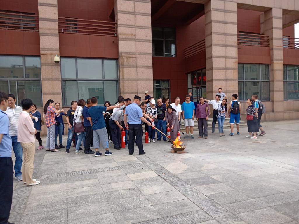 消防知识讲座结束之后,全体教职工来到学校综合楼东侧在郭教官的指导下进行了消防演练活动。
