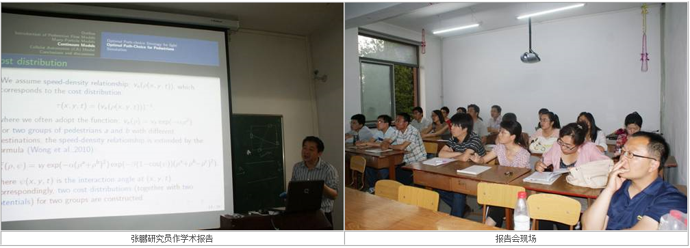 报告题目分别为“Optimal principle for path choice striategies in pedestrian dynamics”、“双曲守恒律问题间断解基本理论与数值方法”、“Shocking fitting method for the LWR traffic folw”和“Lagrange 坐标与交通流模型”。报告会上,张鹏研究员与华体会体育·官方网站师生就有关学术问题进行了热烈、充分的交流。此外,张鹏研究员还鼓励并指导华体会体育·官方网站本科生报考研究生,以及硕士研究生报考博士研究生。